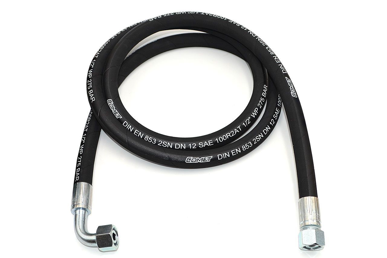 Шланг имеет диаметр 12 мм и резьбу M22x1,5, что обеспечивает легкую установку и надежное соединение с оборудованием. Длина шланга составляет 1 метр, что позволяет использовать его в различных конфигурациях для подключения гидравлических систем. Он успешно справляется с различными нагрузками, что делает его незаменимым компонентом в составе гидравлических установок.